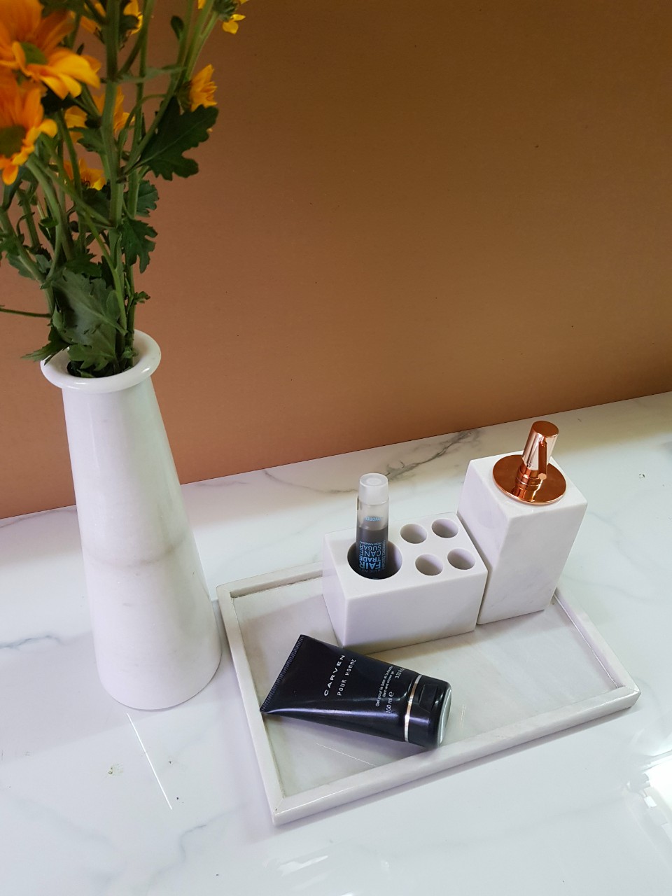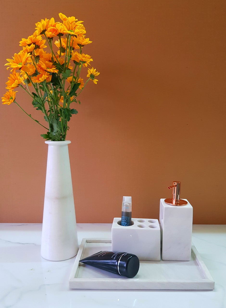 ✨Bình cắm hoa làm từ đá tự nhiên nguyên khối màu Trắng BH29511T