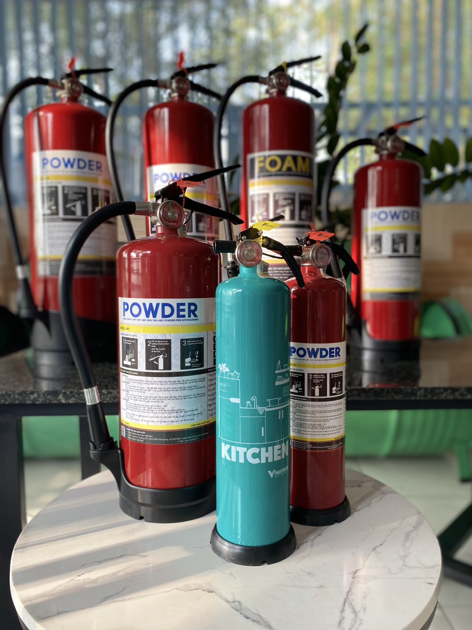 Bình chữa cháy xách tay dạng bột là sản phẩm bình chữa cháy sử dụng bột chữa cháy với thành phần chính là Mono Amoni Photphat; thích hợp sử dụng với các đám cháy chất rắn, các đám cháy chất lỏng và đám cháy khí. Thân bình sử dụng thép cacbon thấp cán nguội với khả năng chịu áp tốt nhằm đảm bảo an toàn trong quá trình bảo quản và sử dụng. Bột chữa cháy ABC, là sự kết hợp mono amoni photphat và amoni sunphat được phun ra thông qua cụm van nhờ tác động của khí đẩy Nitow nạp sẵn có tác dụng kìm hãm phản ứng cháy, cách ly chất cháy với oxy từ đó dập tắt đám cháy.