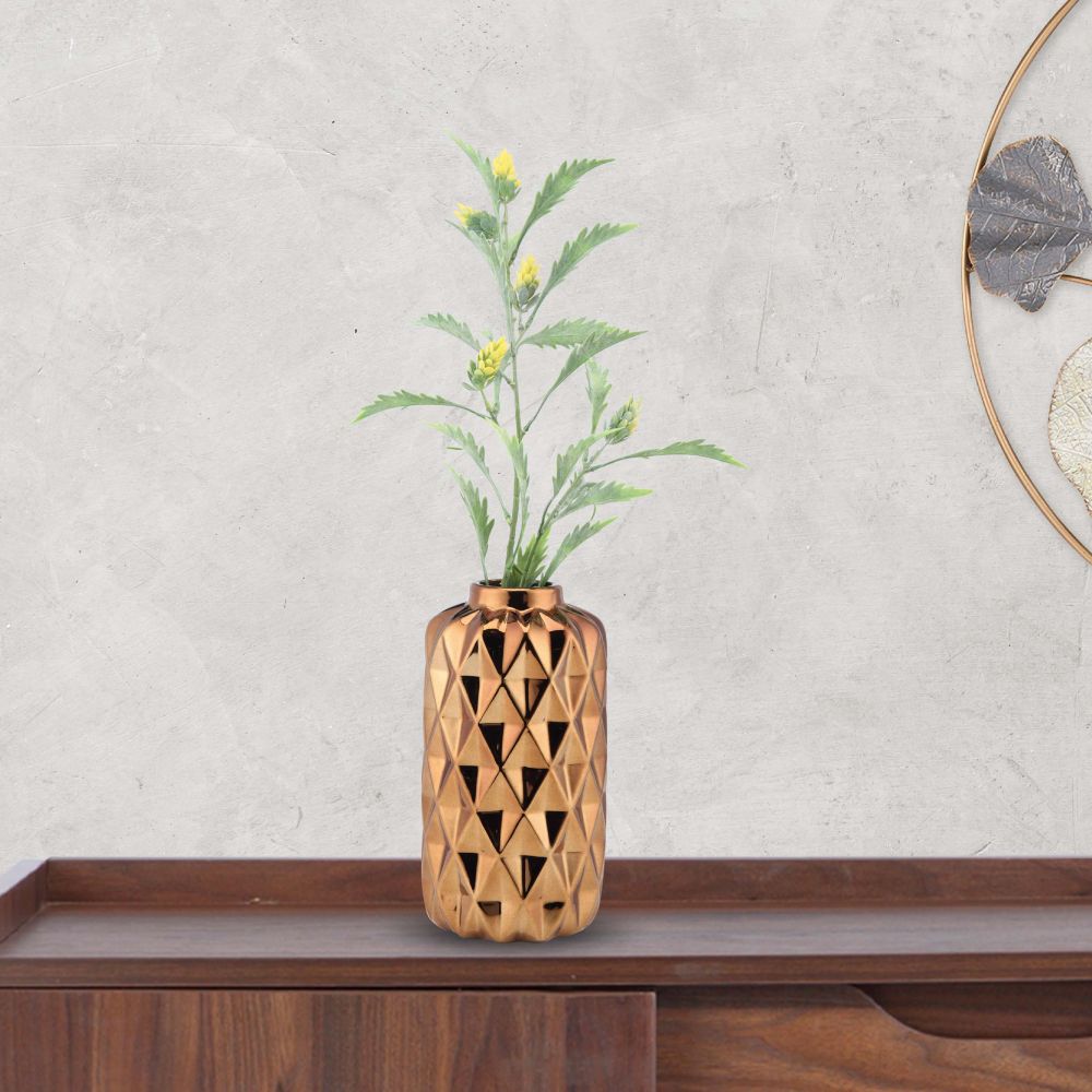 *** Quý khách hàng vui lòng chọn sản phẩm nhà bán TUNDO để nhận được sản phẩm đúng với chất lượng *** Lọ hoa họa cây dừa CTVD28 10.9 x 10.7 x 20.2cm mạ vàng