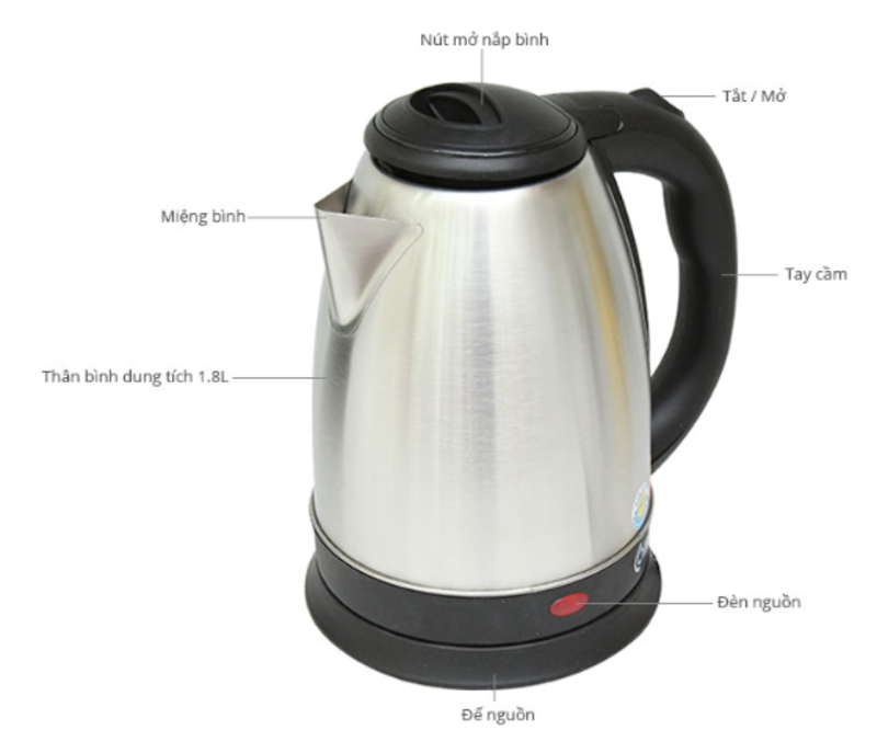 Đặc điểm nổi bật: Thiết kế sang trọng, hiện đại với màu sắc trang nhã Công suất 1800W đun sôi mạnh mẽ, nhanh chóng Dung tích 1.8 lít đủ phục vụ nhu cầu của cả