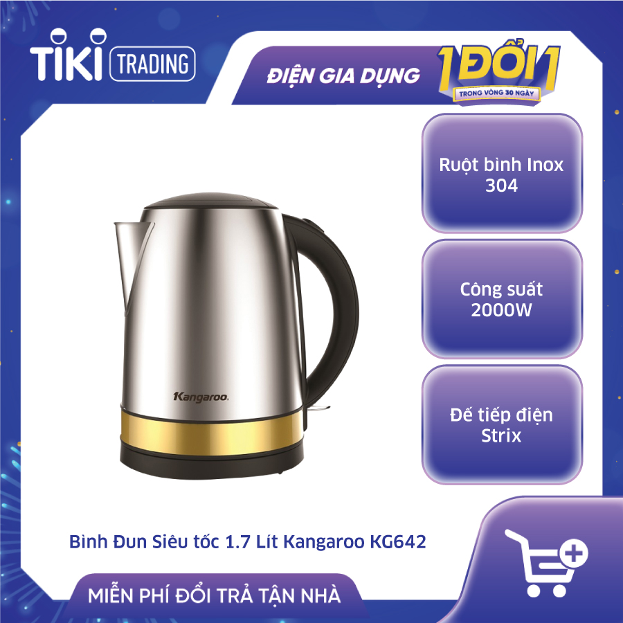 Bình đun siêu tốc Kangaroo KG642 có dung tích 1.7 lít và thiết kế với công suất 2000W đun sôi nhanh và hiệu quả, chỉ trong vòng 3-5 phút, tiết kiệm thời gian và điện năng tiêu thụ tối đa cho người sử dụng. Sản phẩm là lựa chọn phù hợp cho gia đình từ 3 – 4 người.