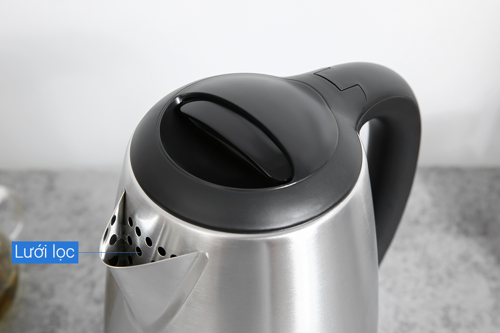 Dung tích: 1.7L Công suất: 1800W Ưu điểm nổi bật: 2 lớp cách nhiệt: Thép không gỉ bên trong, nhựa mát tay bên ngoài – an toàn tuyệt đối, nhất là với gia đình có