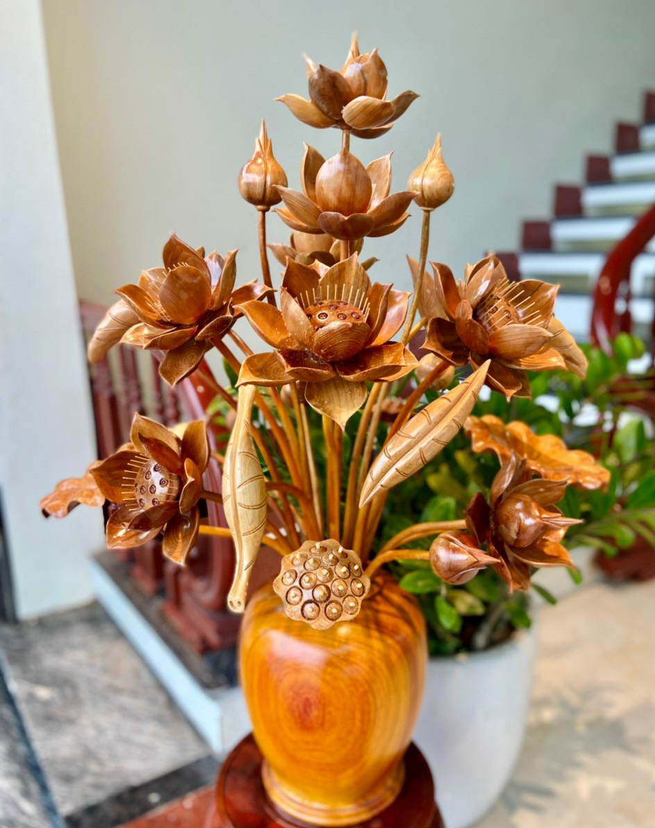 Bình Hoa Sen 21 Cành Gỗ Ngọc Am Thơm Nức Đẹp Giá Xưởng| Xưởng Tượng Gỗ Độc Đáo - 0938410333