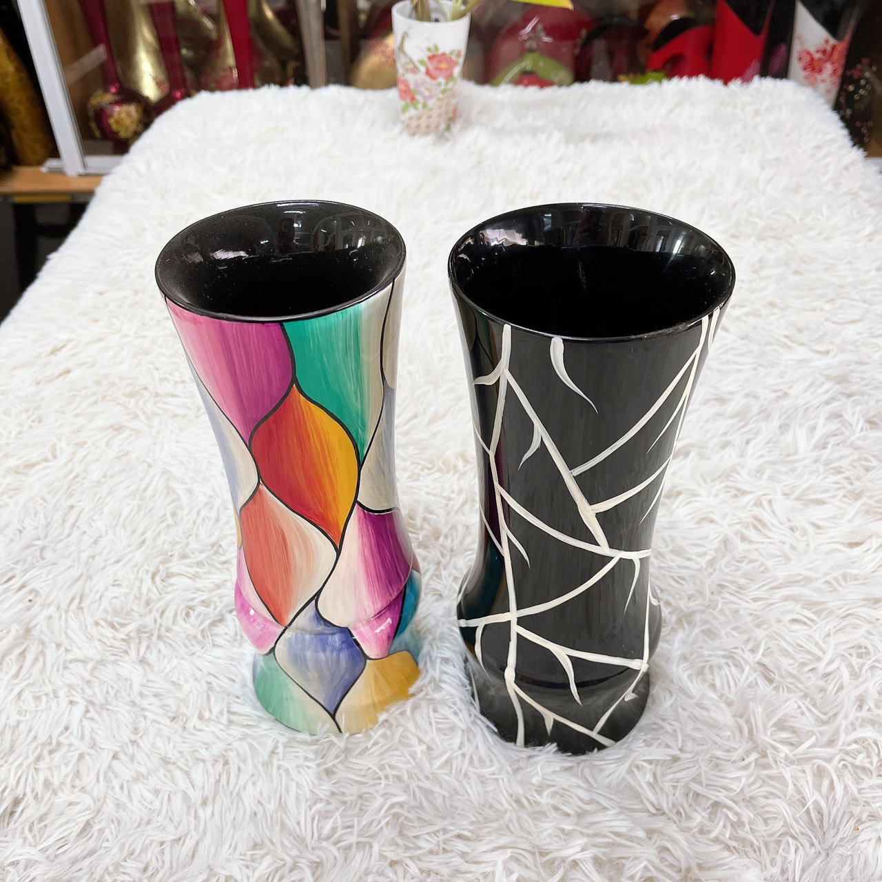Sản phẩm gồm 2 lọ hoa miệng lượn. Chi tiết sản phẩm: Sản phẩm được phủ bởi lớp men rạng vừa cổ điển vừa sang trọng. Kết hợp với các họa tiết đắp nổi hình