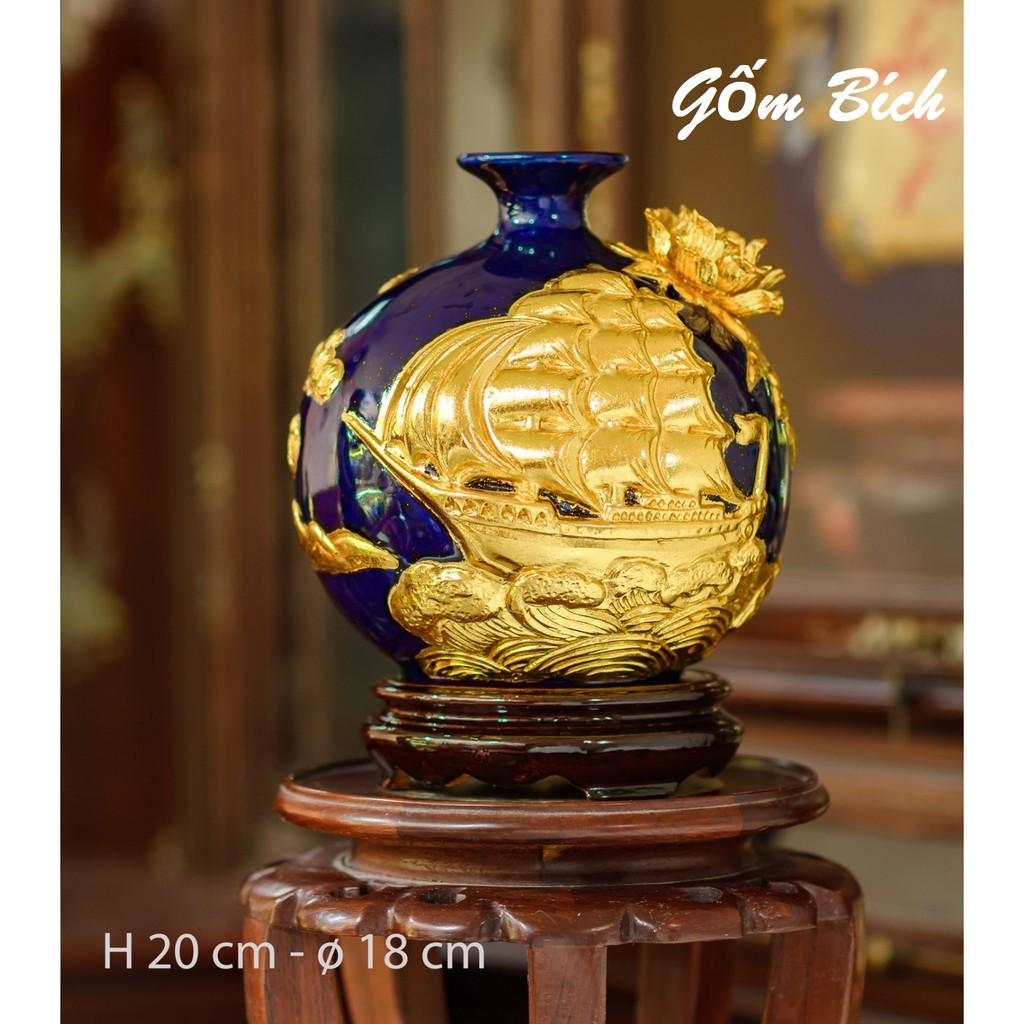 ✨Bình Hút Tài Lộc Thuận Buồm Xuôi Gió Dát Vàng Bình Phong Thủy Tài Lộc Gốm Sứ Bát Tràng - Gốm Bích