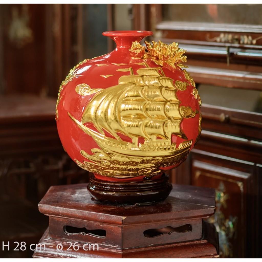 Bình hút lộc gốm Bát Tràng vẽ vàng 24k- thuận buồm xuôi gió đỏ