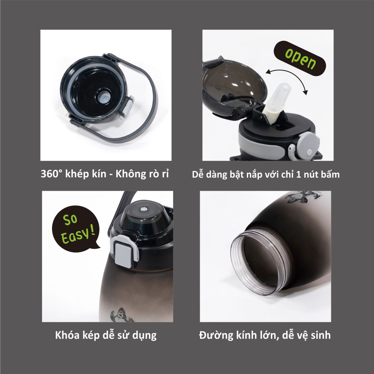- Bình nước được làm bằng vật liệu TRITAN chịu nhiệt độ cao cấp thực phẩm và không chứa BPA an toàn cho sức khoẻ của bé.