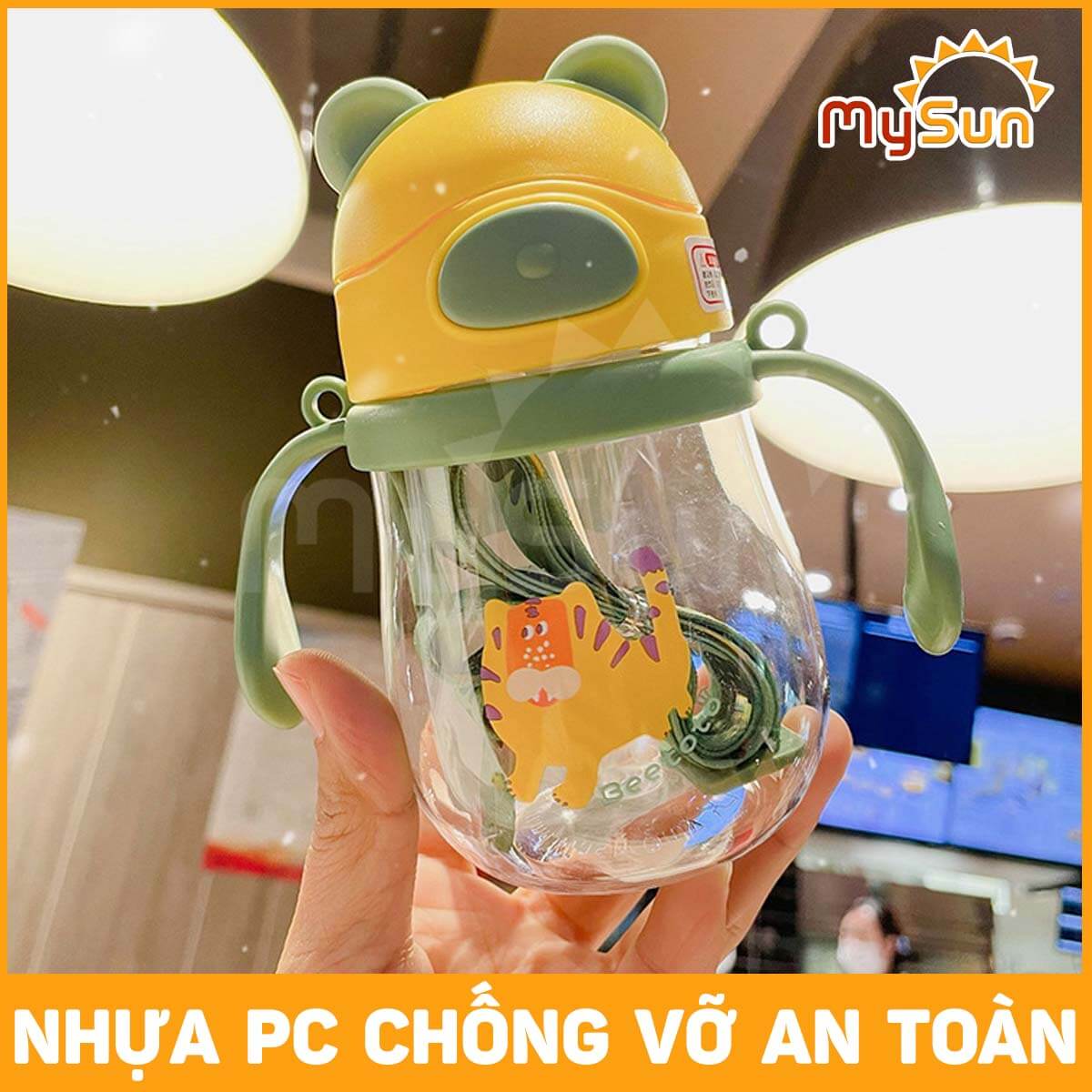 ✨Bình nước có ống hút chóng sặc 250ml tập uống cho bé 1 2 3 tuổi đi học mẫu giáo có tay cầm dây đeo đẹp cute MySun
