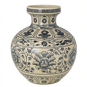 BÌNH HOA LAM GỐM CHU ĐẬU Ghi chú quan trọng: - Sản phẩm có hai phiên bản: vẽ vàng kim và vẽ truyền thống, nhiều kích thước ( đường kính và chiều cao). - Vì