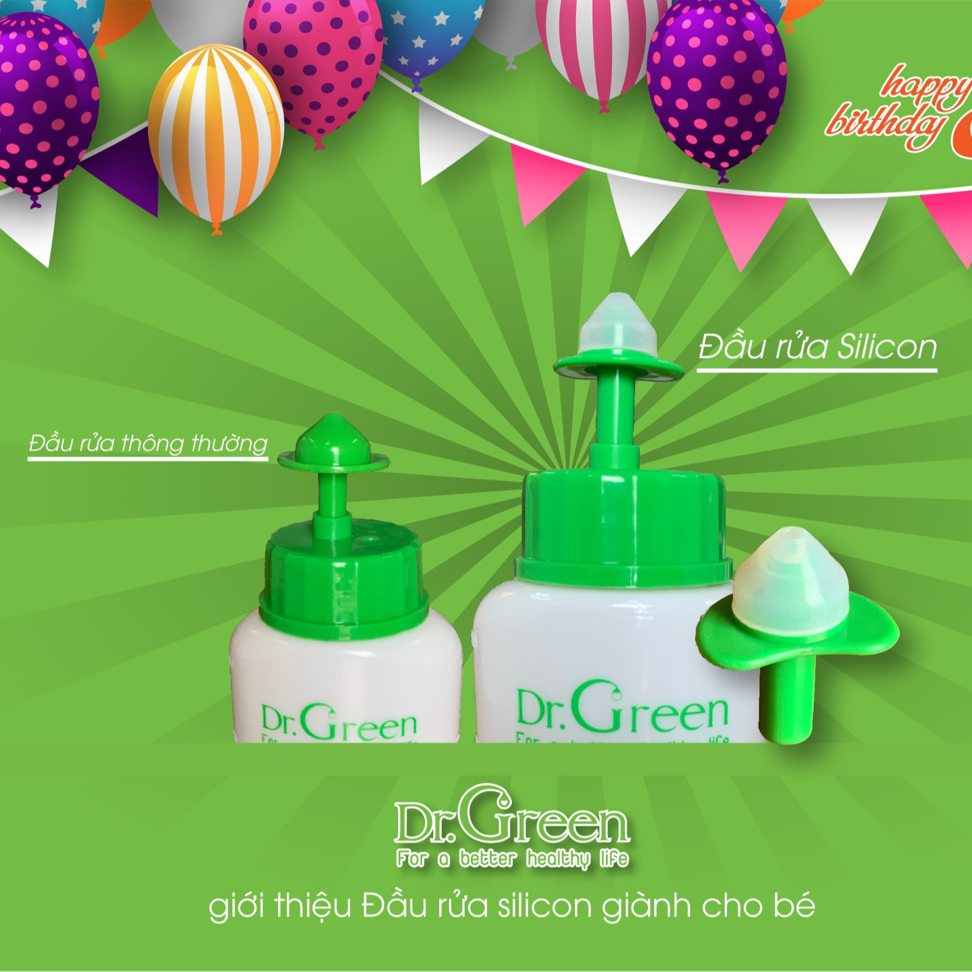 - Ngăn ngừa ung thư mũi. Hướng dẫn sử dụng: Bước 1: Rửa tay sạch và tháo nắp bảo vệ khỏi bình rửa mũi Bước 2: Dùng nước cất hoặc nước lọc súc rửa thật kỹ phía trong bình Bước 3: Cắt gói hỗn hợp Dr.Green và đổ vào bình Bước 4: Rót nước cất, nước lọc hoặc nước đun sôi để ấm vào bình ở mức 240ml. Bước 5: Vặn chặt nắp bình, đặt 1 ngón tay bịt kín miệng của lỗ rửa và lắc cho dung dịch tan hết. Bước 6: Cúi người, nghiêng đầu trước bồn rửa, nhẹ nhàng đưa đầu dụng cụ vào mũi Bước 7: Há miệng, nhẹ nhàng bóp chai theo từng nhịp. Bước 8: Lặp lại với bên mũi còn lại khi dung dịch còn một nửa.
