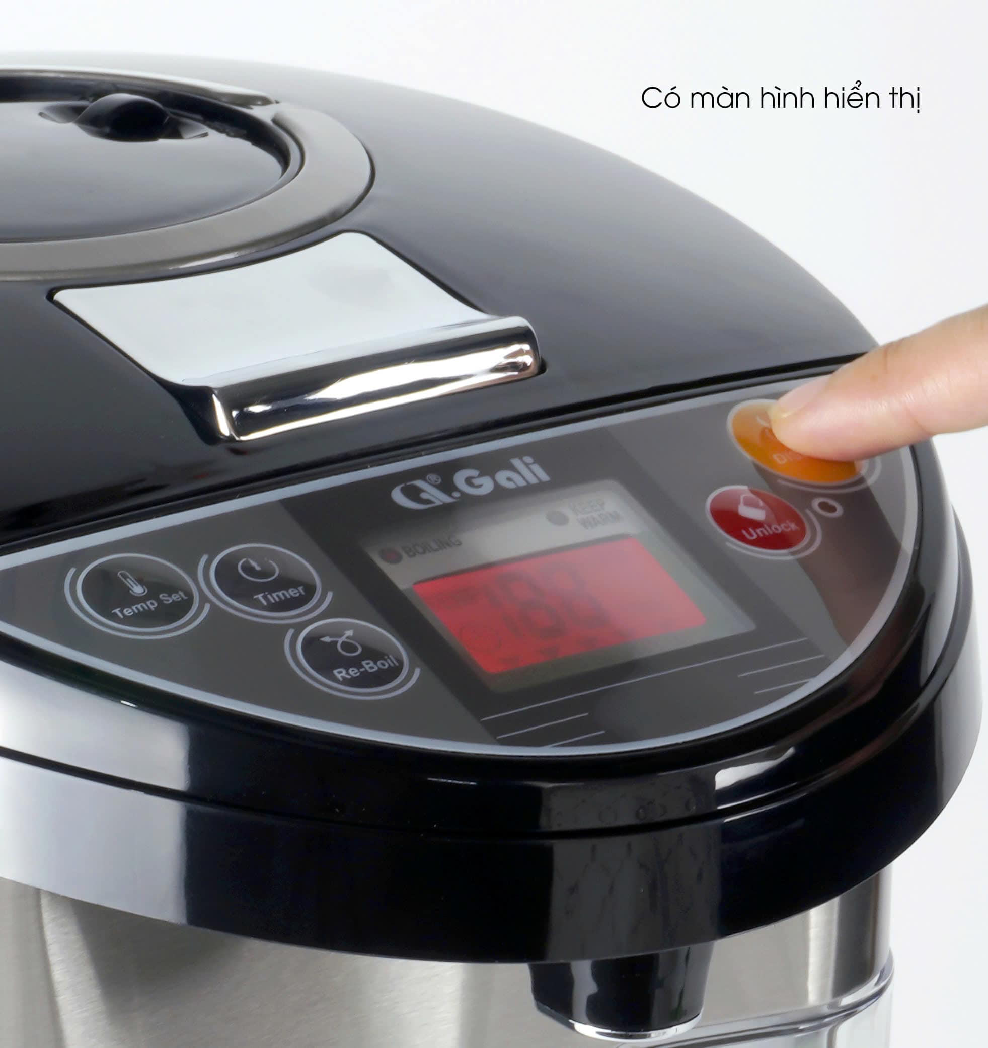 Bình thủy điện Gali GL-5060B 6 Lít - Dung tích 6 lít, công suất 680w/220Vac-50Hz. - Cấu tạo 2 lớp chống nóng, vỏ ngoài inox sang trọng, thân trong inox 304 không phôi nhiễm, an