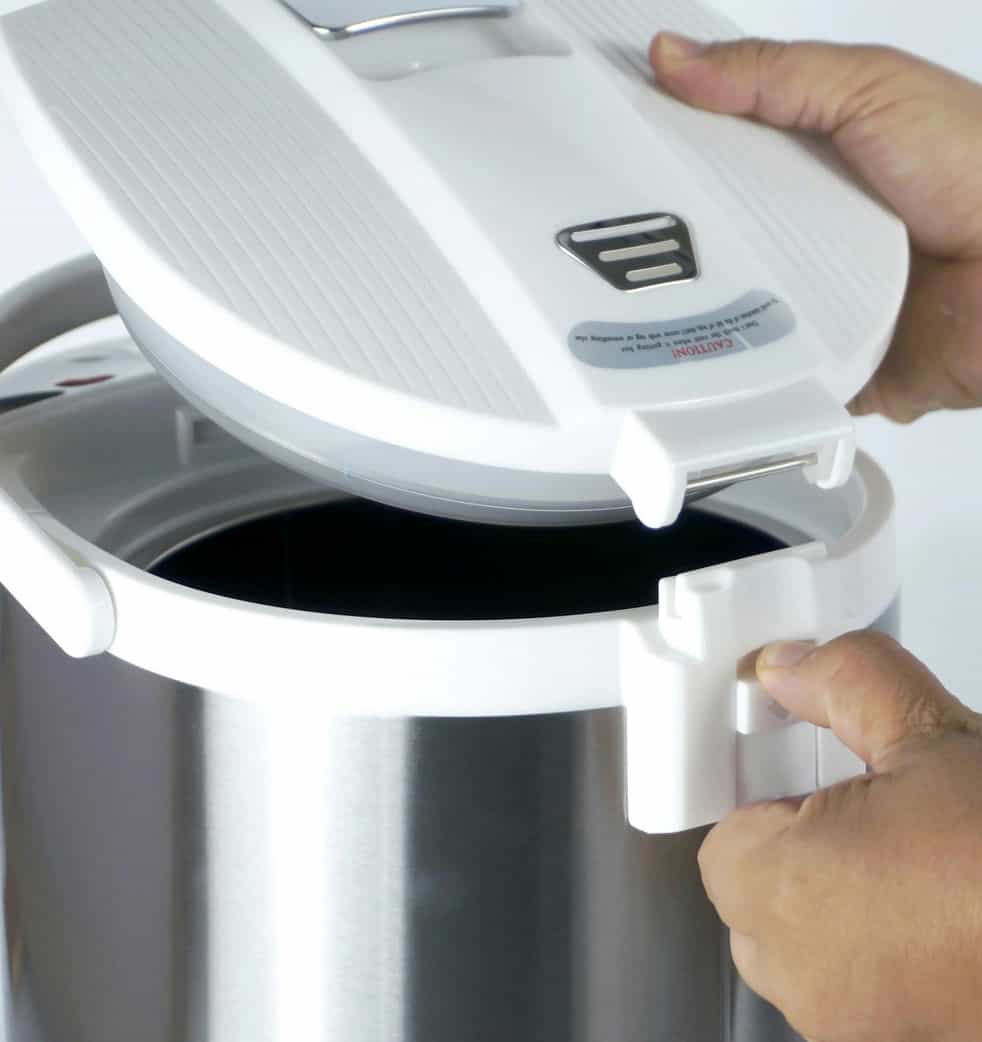 Thiết kế đơn giản Bình thủy điện Cuckoo CWP-333G được thiết kế màu ghi đơn giản, dễ sử dụng, kích thước nhỏ gọn nên không chiếm nhiều diện tích không gian sử dụng. Chất liệu cao