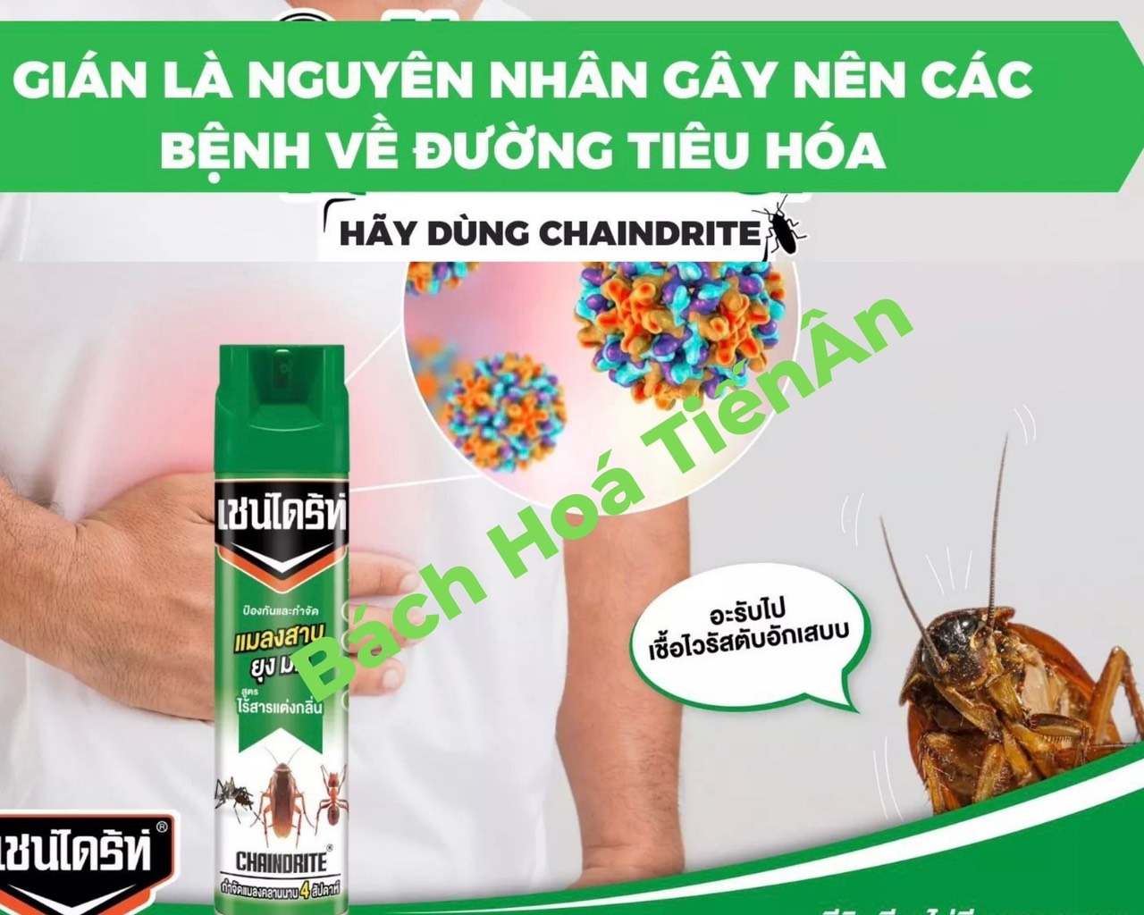 ● Thương hiệu : CHAINDRITE ( THÁI LAN ) ● Nhà sản xuất: Sherwood Corporation ( THÁI LAN ) Public Company Limtied ● Đăng ký và chiệu trách nhiệm về chế phẩm: Công ty TNHH Thương mại Diệp Linh - Việt Nam địa chỉ: Số 02, ngõ 33, phố Nguyễn An Ninh, phường Tương Mai, quận Hoàng Mai, tp Hà Nội ● Dung tích: 600ml ● Phân loại : CHAINDRITE 5 ( diệt muỗi, gián, kiến và côn trùng), CHAINDRITE 3 (chuyên diệt Mối/Mọt/Gián/Kiến/Kiến ba khoang/Côn Trùng ) ● Nổi bật : Bình xịt CHAINDRITE thương hiệu số một tại Thái Lan nên rất An Toàn Cho Người Sử Dụng,Có tác dụng trong 4 tuần kể từ lúc xịt.