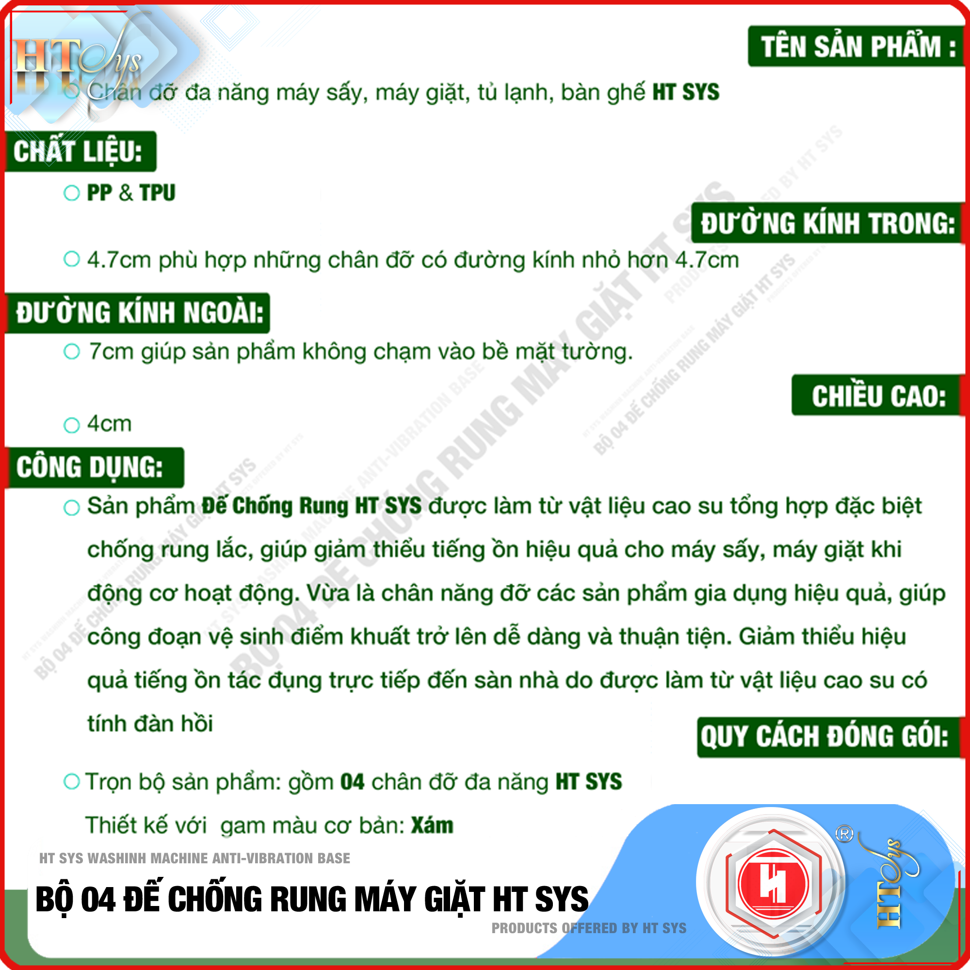 Bộ 04 chân đế cao su chống rung máy giặt HT SYS - Hàng Chính Hãng