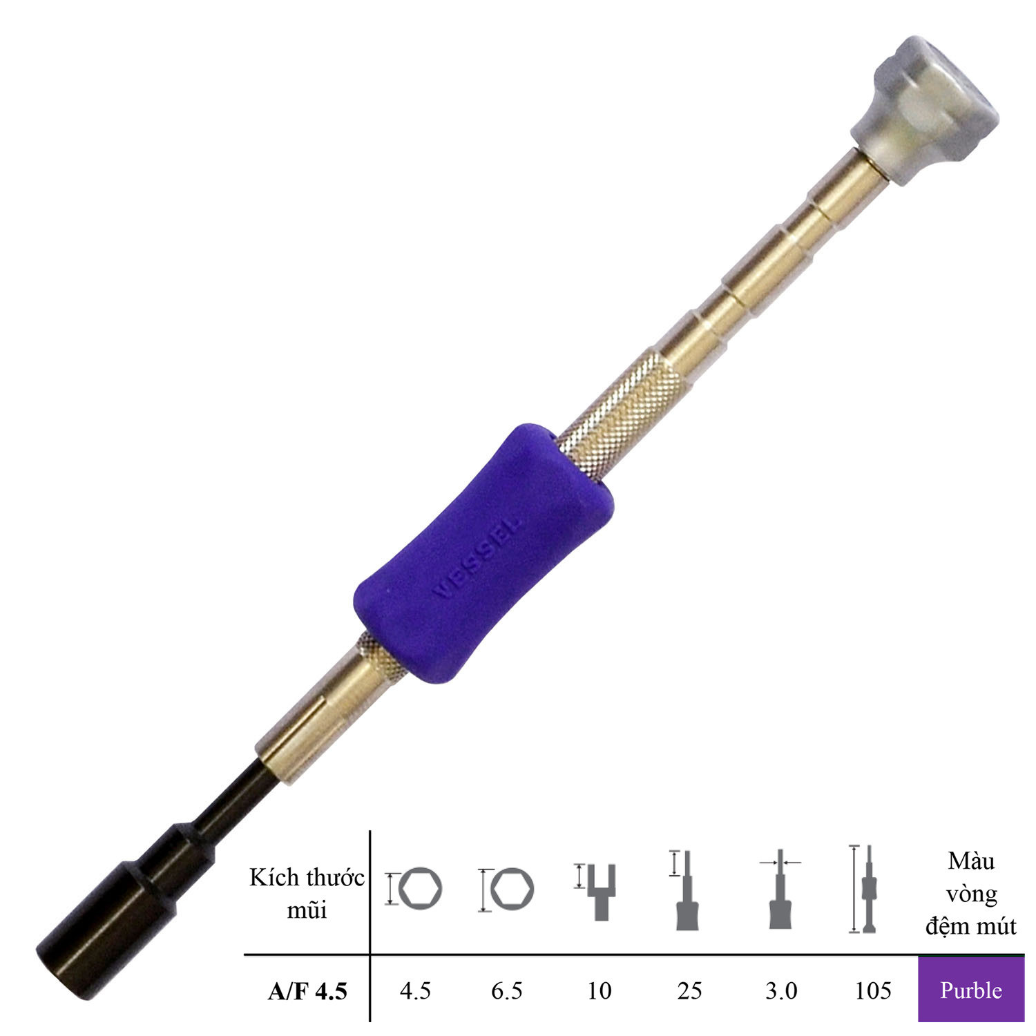 ✨Bộ 06 cái đầu vặn ốc lục giác siêu nhỏ No.TD-57 Vessel - Nhật Bản