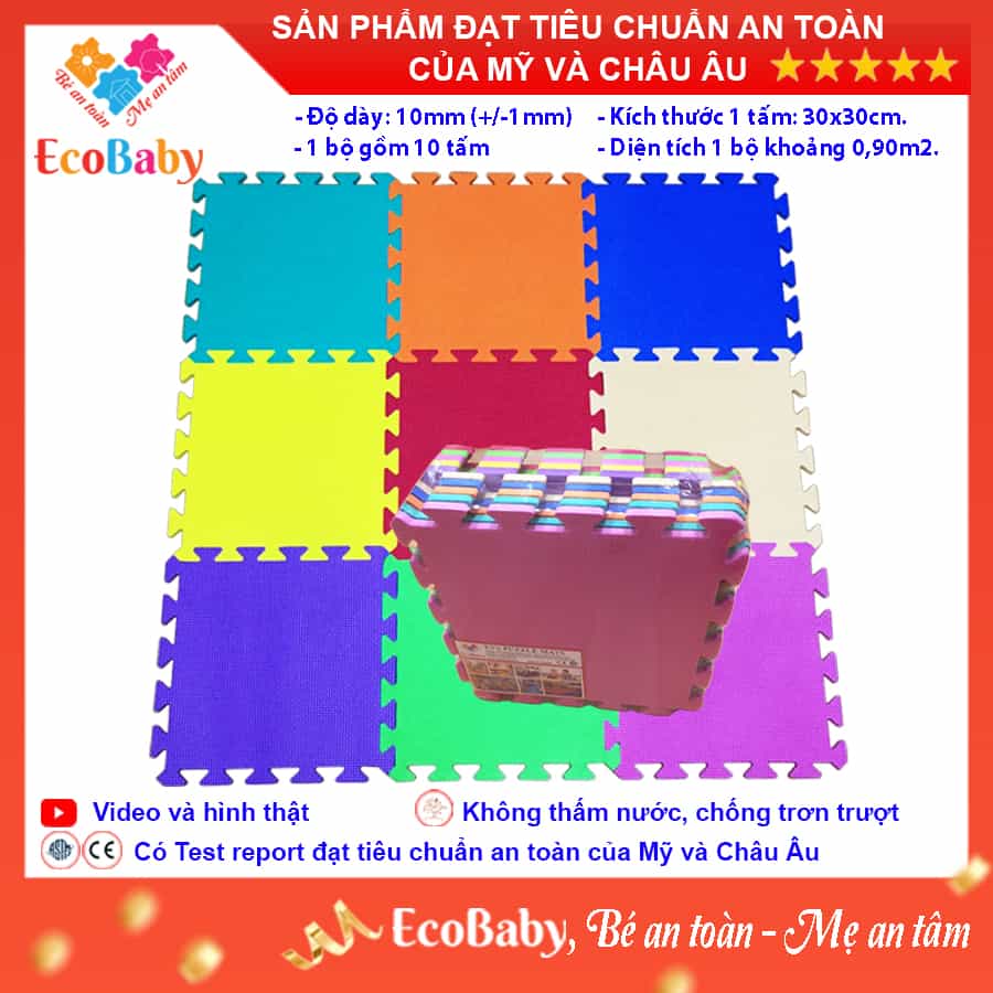 ✨Bộ 10 tấm Thảm xốp cho bé ECOBABY, thảm xốp đạt tiêu chuẩn Mỹ và Châu Âu, độ dày khoảng 1cm, kích thước 1 tấm 30x30cm - Màu trơn