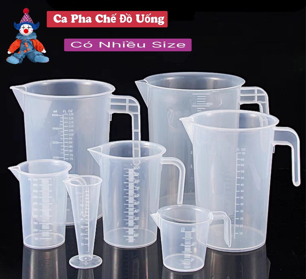 Bộ ca cốc nhựa chia vạch 0.5 lít - 1 lít - 2 lít (MR.Cường)