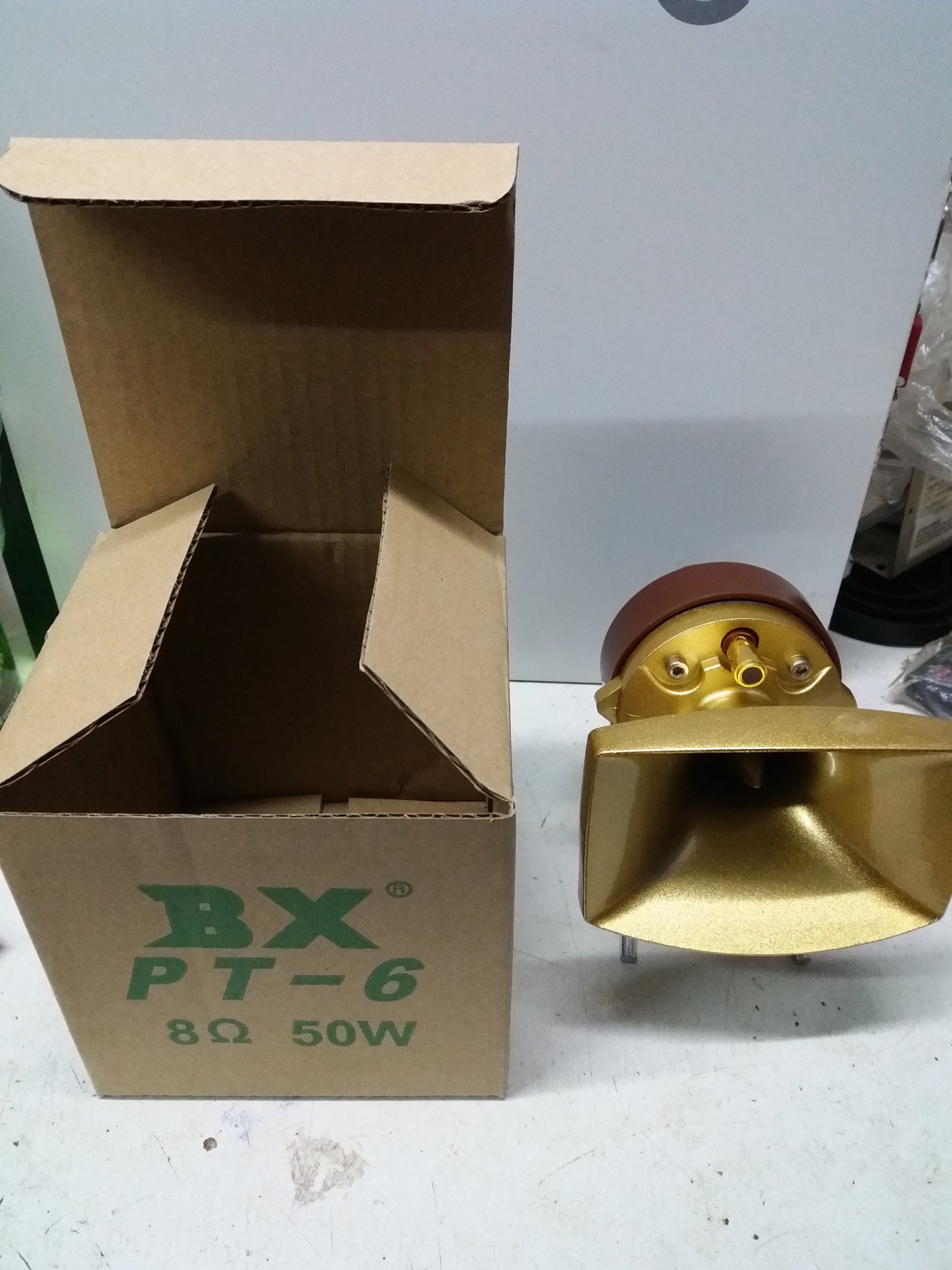 Loa tép còi BX PT6 - loa treble PT6 có dãi tần từ 8 khz -20 khz họng đúc bằng GANG nên phát ra những âm thanh trong vắt leng keng dùng để gắn thêm trong các dàn Karaoke nghe nhạc gia đình .