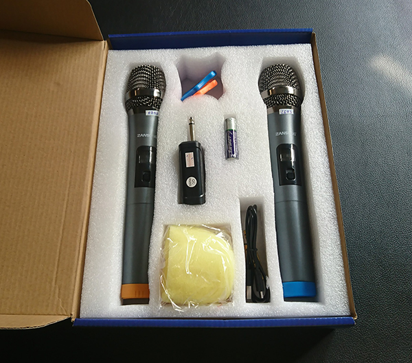 Bộ Micro không dây zansong V19 là một sản phẩm có thiết kế đặc biệt cho ứng dụng Karaoke.Tần số đáp ứng phù hợp cho giọng hát với tầm trung dầy và ấm, kiểm soát dải tần số cao, giảm thiểu hiện tương phản hồi âm thanh,làm cho hiệu suất âm thanh hoàn hảo hơn. Với mọi bộ  thường phải đi kèm với một đầu thu rất cồng kềnh,  có thiết kế đột phá gọn nhẹ tính di động cao ta chỉ cần cắm đầu thu nhỏ gọn của bộ míc vào các thiết bị âm thanh là ta có thể thỏa sức ca hát, với khoảng cách thu bắt sóng lên tới 20m. Âm thanh chuẩn xác Bộ Microphone không dây Zangsong V19 được thiết kế để hạn chế tối đa hiện tượng âm thanh bị nhiễu loạn, Âm thanh chuẩn xác và ít bị bể tiếng nhất. Zangsong V19 được trang bị hệ thống điều chỉnh âm lượng trên bộ tiếp sóng Công tắc On/Off nằm giữa thân micro Phím điều khiển On/Off được bố trí ngay giữa thân micro có màn led hiển thị tần số mic rất đẹp ( hình trên) , chỉ cần gạt tay lên xuống là có thể tắt bật âm thanh, rất tiện lợi. Dùng cho nhiều mục đích khác nhau Microphone không dây Zangsong V19 có thể dùng để hát karaoke, nói chuyện trong nhà, trên sân khấu và ngay cả ngoài trời. Phụ kiện di theo bộ mic gồm: 2 Micro, 1 bộ thu phát tín hiệu, 1 cab sạc, 2 đôi pin A, 1 đầu cắm chuyển đổi tặng thêm bông lọc âm và đế chống lăn.