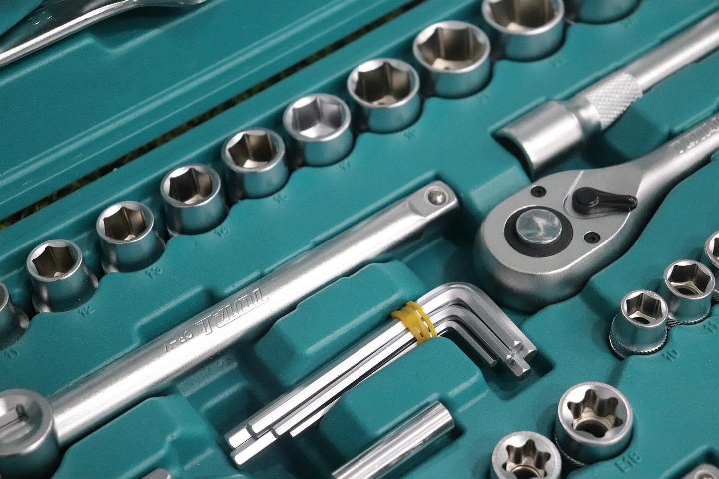Bộ 17 ổ cắm 1/2" Bao gồm: 12 ổ cắm Dr 1/2": 10-11-12-13-14-15-16-17-18-19-21-24mm 1 tay cầm ratchet tháo lắp nhanh 1/2" 72T 2 thanh nối dài Dr 1/2": 5"(125mm) & 10"(250mm) 1 ổ cắm bugi: