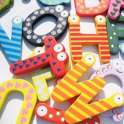 Bộ 26 chữ cái có nam châm hít làm từ gỗ ép nam châm rất an toàn cho các bé vui chơi.
