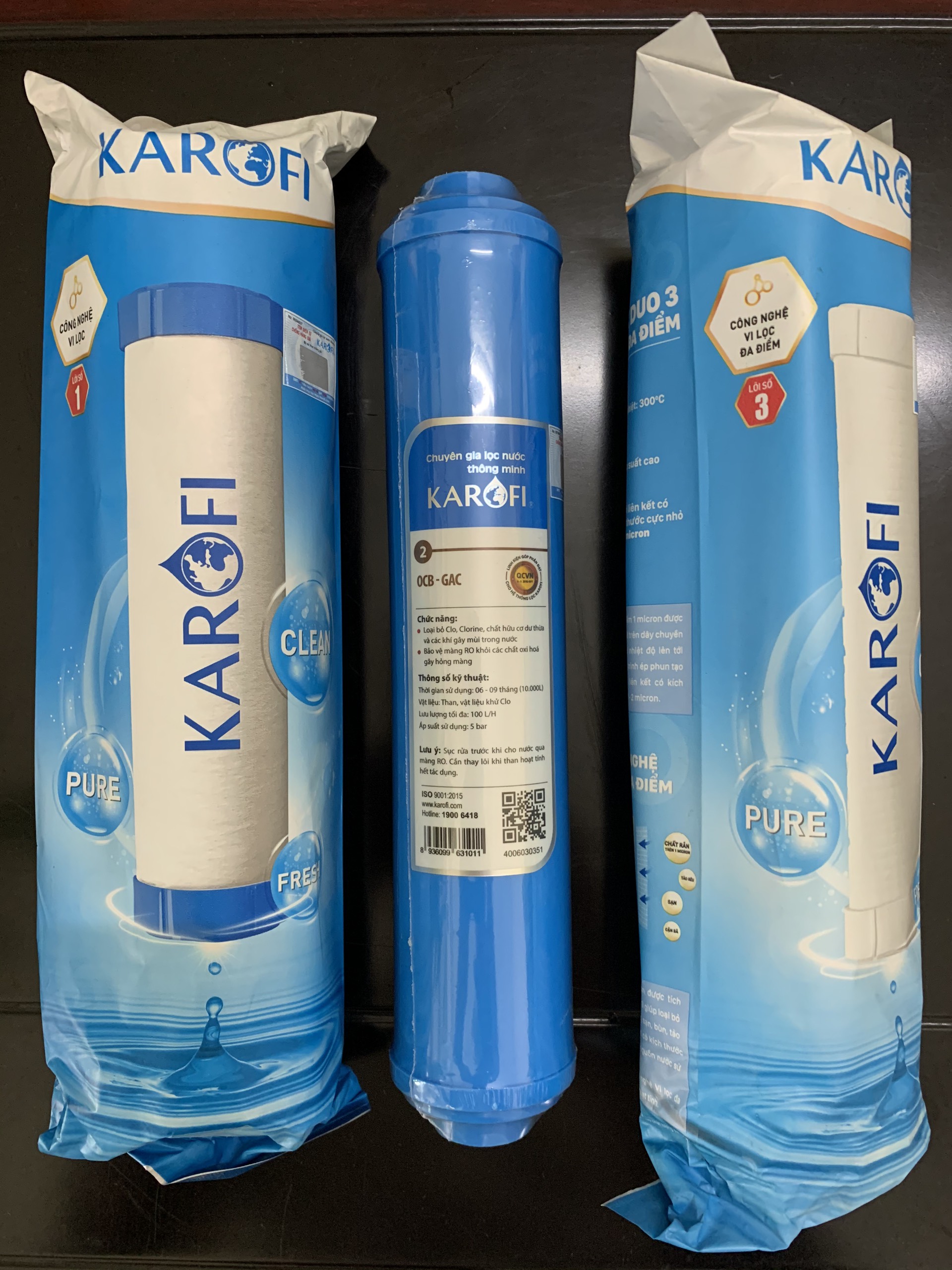 Bộ Lọc Nước Sinh Hoạt 3 Cấp Bộ lọc nước sinh hoạt 3 cấp, gồm 3 cốc lọc organic trong suốt. Bộ sản phẩm bao gồm 3 lõi bên trong, tay vặn mở cốc và