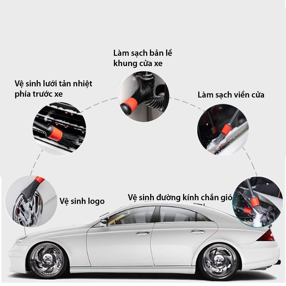 Shop Trendycar xin hân hạnh giới thiệu đến bạn Sản phẩm Bộ 5 cọ tròn rửa xe chi tiết, chổi vệ sinh nội thất ô tô đa năng