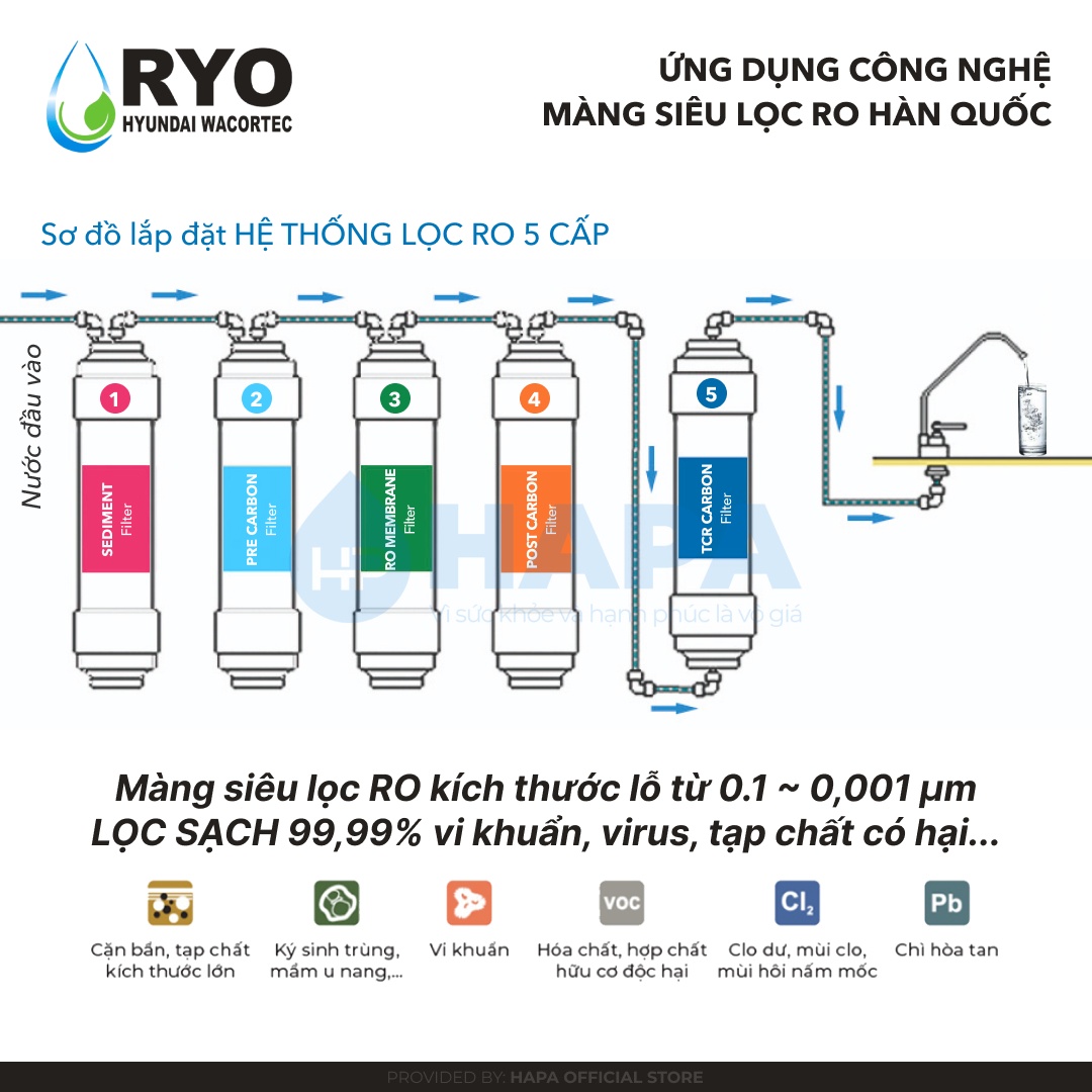 ✨Bộ 5 Lõi Lọc Nước RYO HYUNDAI RP903, Sediment, Pre-Carbon, RO Membrane Filter, Post Carbon, TCR Filter, Nhập Khẩu Hàn Quốc - Hàng Chính Hãng.