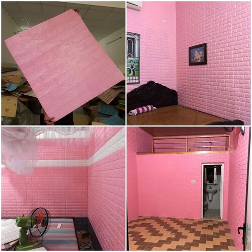 ✨Bộ 5 Tấm Xốp Dán Tường 3D Giả Gạch Màu Hồng Nhạt 70cmx77cm