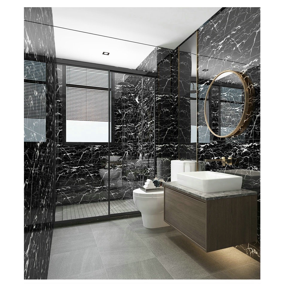 Mẫu giấy dán tường giả đá hoa cương màu trắng này có sẵn keo rồi, khách chỉ cần lột ra dán thôi. Chất liệu bền đẹp, không bám bụi, có thể lau chùi bằng xà