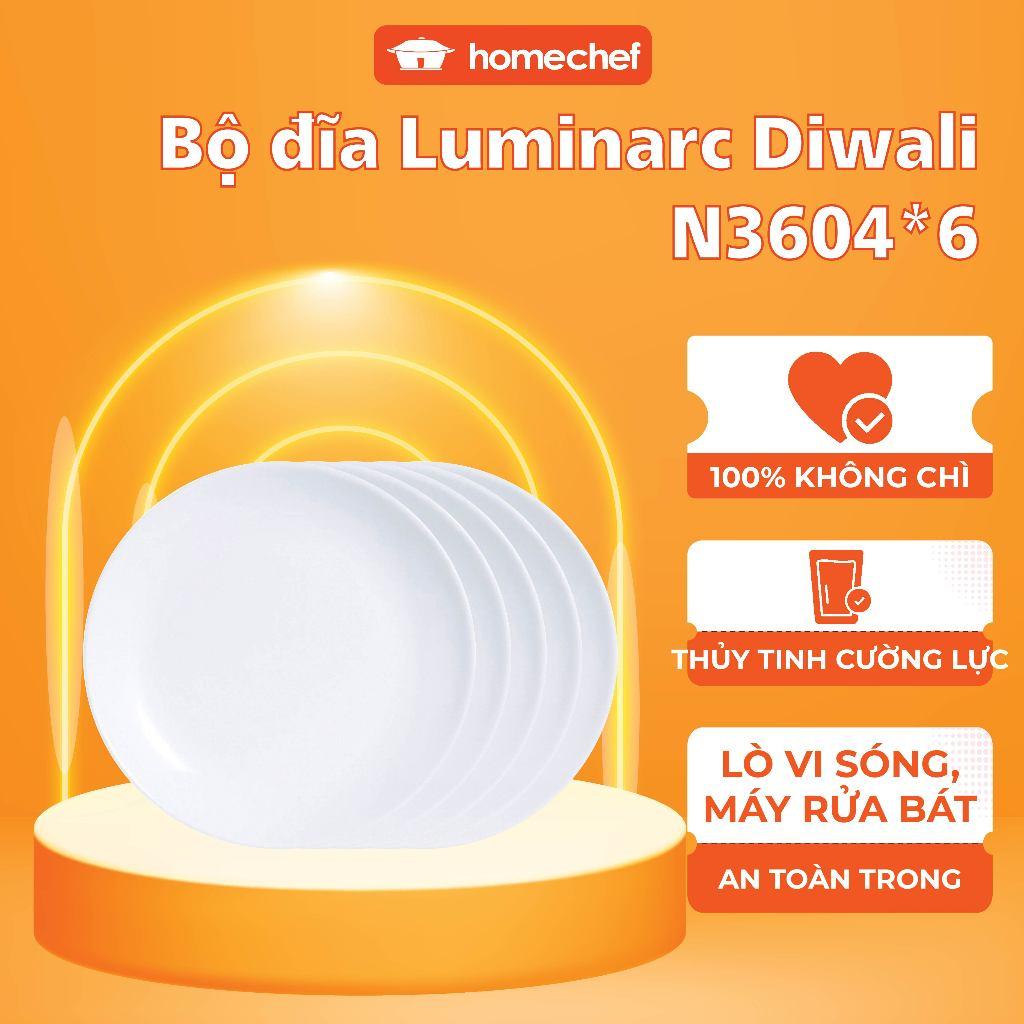 ✨Bộ 6 đĩa (dĩa) thủy tinh Luminarc Everyday 27cm N3604*6, dùng lò vi sóng, máy rửa bát