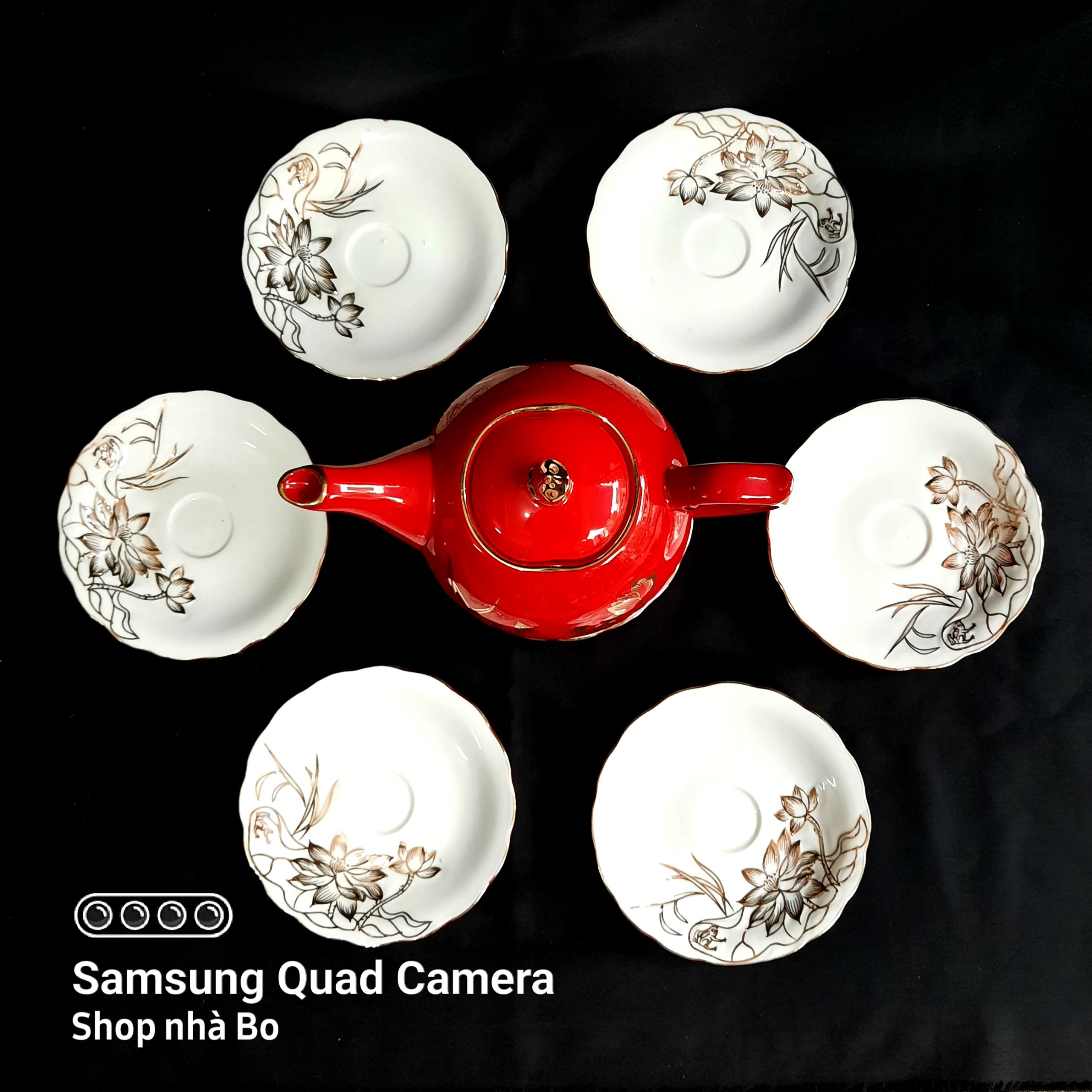BỘ ẤM CHÉN HOẢ BIẾN ĐEN VẼ SEN VÀNG - Hotline 0828397333
