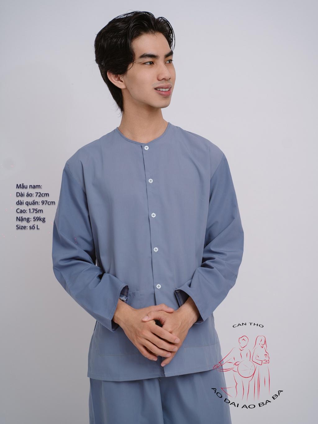 ✨Bộ áo bà ba nam vải kate (Màu xám)- Có bộ bà ba Bigsize- may sỉ bà ba toàn quốc - May bộ bà ba theo yêu cầu