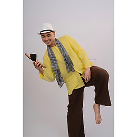 Bộ Bà Ba Nam Áo Vàng và Quần Nâu Vải Kate