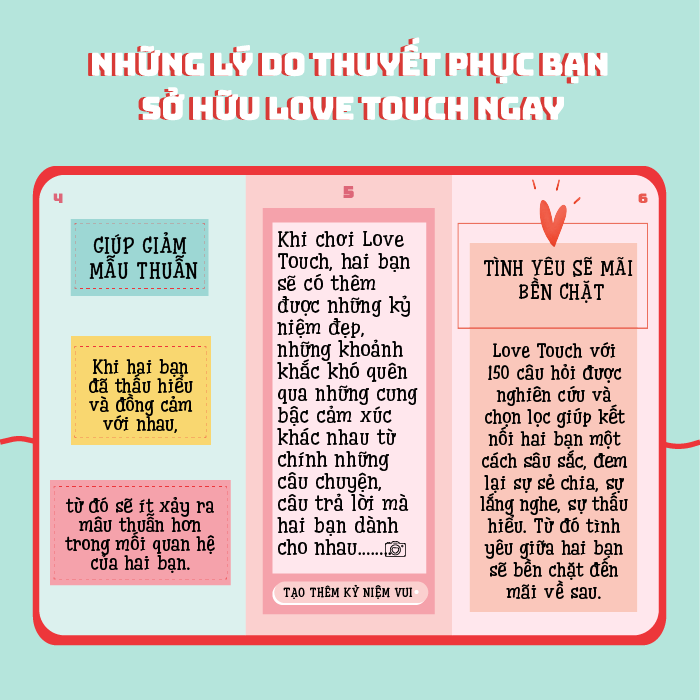 Love Touch được thiết kế dưới dạng bộ thẻ câu hỏi dành cho cặp đôi, đã được tham khảo từ những nghiên cứu của các nhà tâm lý học. Vì vậy, trong quá trình chơi, người chơi sẽ được trải qua nhiều cung bậc cảm xúc khác nhau. Đem đến những ý nghĩa, giá trị đằng sau mỗi câu hỏi.