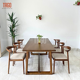 Được sản xuất 100% từ chất liệu gỗ tự nhiên. Mặt bàn vân gỗ sơn bóng mờ. Đây là dòng bàn ăn được ưa chuộng do thiết kế sang trọng, đẹp và vô cùng tinh