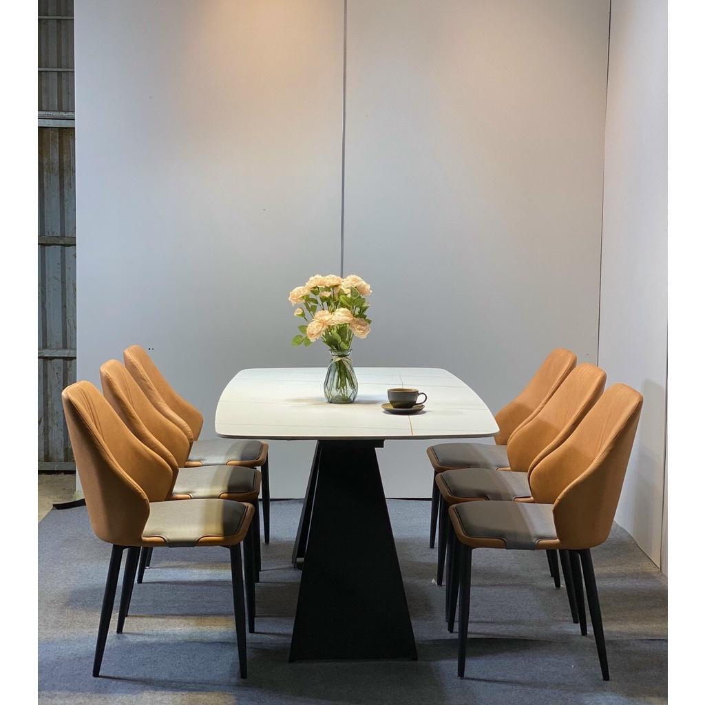 Bộ bàn ăn nhập khẩu hiện đại mặt đá Ceramic, kích thước 1m6 + 6 ghế