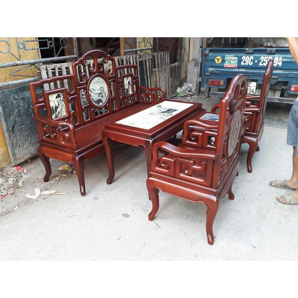 Bộ Bàn ghế Móc Mỏ 6 món gỗ gụ lào mặt đá vách đá - Đồ Gỗ Kinh Bắc
