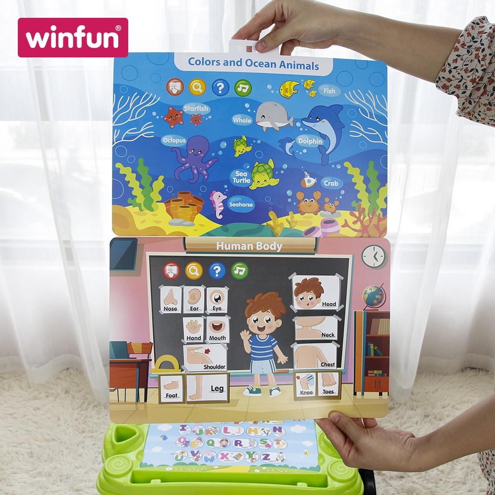 - Các nút bấm giúp bé rèn luyện ngón tay linh hoạt hơn =====THƯƠNG HIỆU WINFUN===== Winfun - Thương hiệu đồ chơi thông minh hàng đầu thế giới - Phát triển được phát triển bởi đội ngũ chuyên gia bao gồm các bậc phụ huynh là những nhà tâm lý học nghiên cứu và sản xuất. Với sứ mệnh sản xuất đồ chơi thông minh, an toàn, biến mỗi ngày của trẻ thơ trở nên đáng quý, đáng nhớ, Winfun mong muốn có thể xây dựng một thế giới đồ chơi hạnh phúc cho bé, cùng các bậc phụ huynh nuôi con lớn khôn từng ngày. Các sản phẩm của Winfun được thiết kế để kích thích sự phát triển tối đa 80% não bộ của bé từ 1 tới 3 tuổi, bao gồm các giai đoạn: từ 0 – 6 tháng; 6 – 12 tháng; 12 – 18 tháng; 18 – 36 tháng tuổi "Trẻ em có được niềm hạnh phúc thông qua vui chơi” HÃY ĐỂ sản phẩm của Winfun cùng với bé phát triển để kích thích trí tưởng tượng, sáng tạo và khả năng nhận thức bằng cách học thông qua các hoạt động vui chơi đó. Các dòng đồ chơi của Winfun làm bằng nhựa cao cấp đảm bảo chất lượng và độ an toàn khi các bé sử dụng, đạt chuẩn quốc tế của ASTM – American Society for Testing and Material, tức Hiệp hội Kiểm nghiệm và Nguyên liệu Hoa Kỳ. Sứ mệnh giúp bé yêu phát triển toàn diện của thương hiệu đồ chơi chuẩn “5 sao” WINFUN: thương hiệu đồ chơi chuẩn “5 sao” ra đời với sứ mệnh giúp bé yêu phát triển trên mọi phương diện nhận thức – cảm xúc – thể chất. "Winning is only half of it, having fun is the other half"