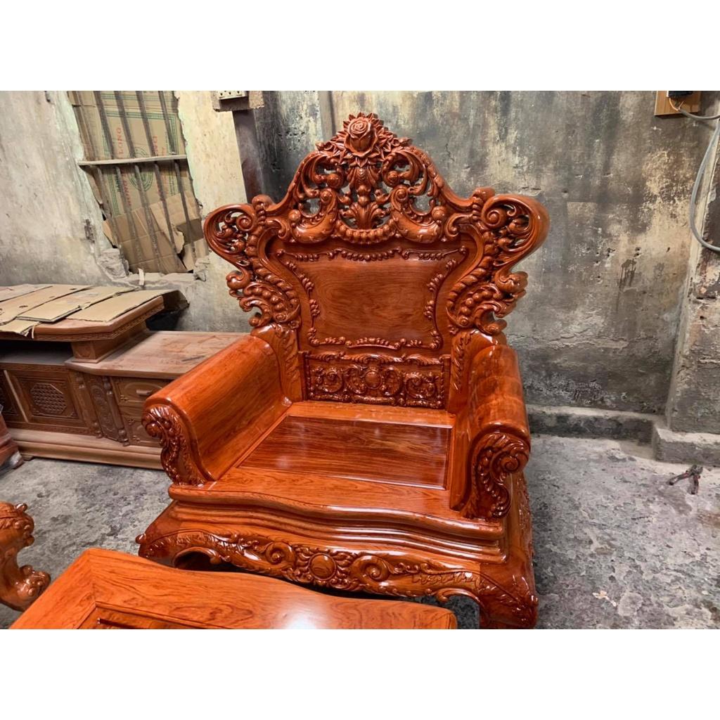 Bàn ghế Hoàng Gia chân 14 gỗ hương đá tay liền nguyên khối đục 2 mặt đẹp 2024