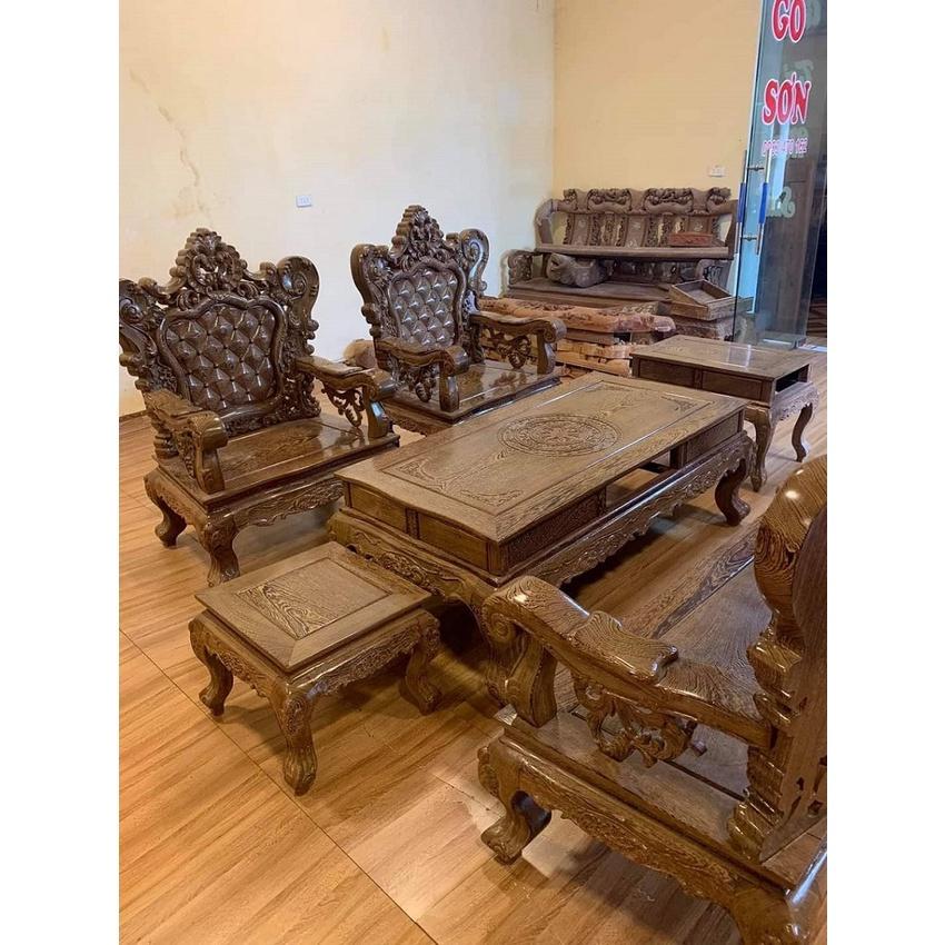 ✨bộ bàn ghế phòng khách hoàng gia luis gỗ mun đuôi công