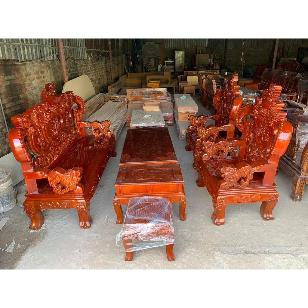 ✨bộ bàn ghế phòng khách rồng khuỳnh gỗ xà cừ tay 12