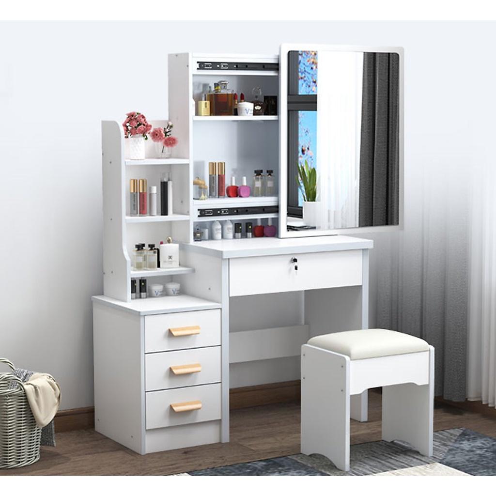 Mua tại TiktokKích thước: 8038130cmMàu ngẫu nhiênThiết kế nhỏ gọn, tiện dụngHàng lắp ráp nên dễ dàng tháo lắp và di chuyểnCó ngăn đựng đồ makeup, hộc đựng đồKèm gương soi tiện lợiSản phẩm kèm ghế đệ Sản phẩm này là tài sản cá nhân được bán bởi Nhà Bán Hàng Cá Nhân và không thuộc đối tượng phải chịu thuế GTGT. Do đó hoá đơn VAT không được cung cấp trong trường hợp này.