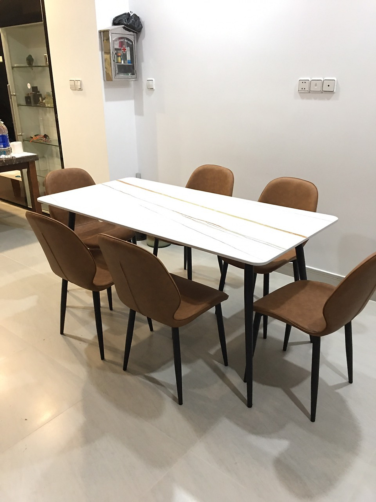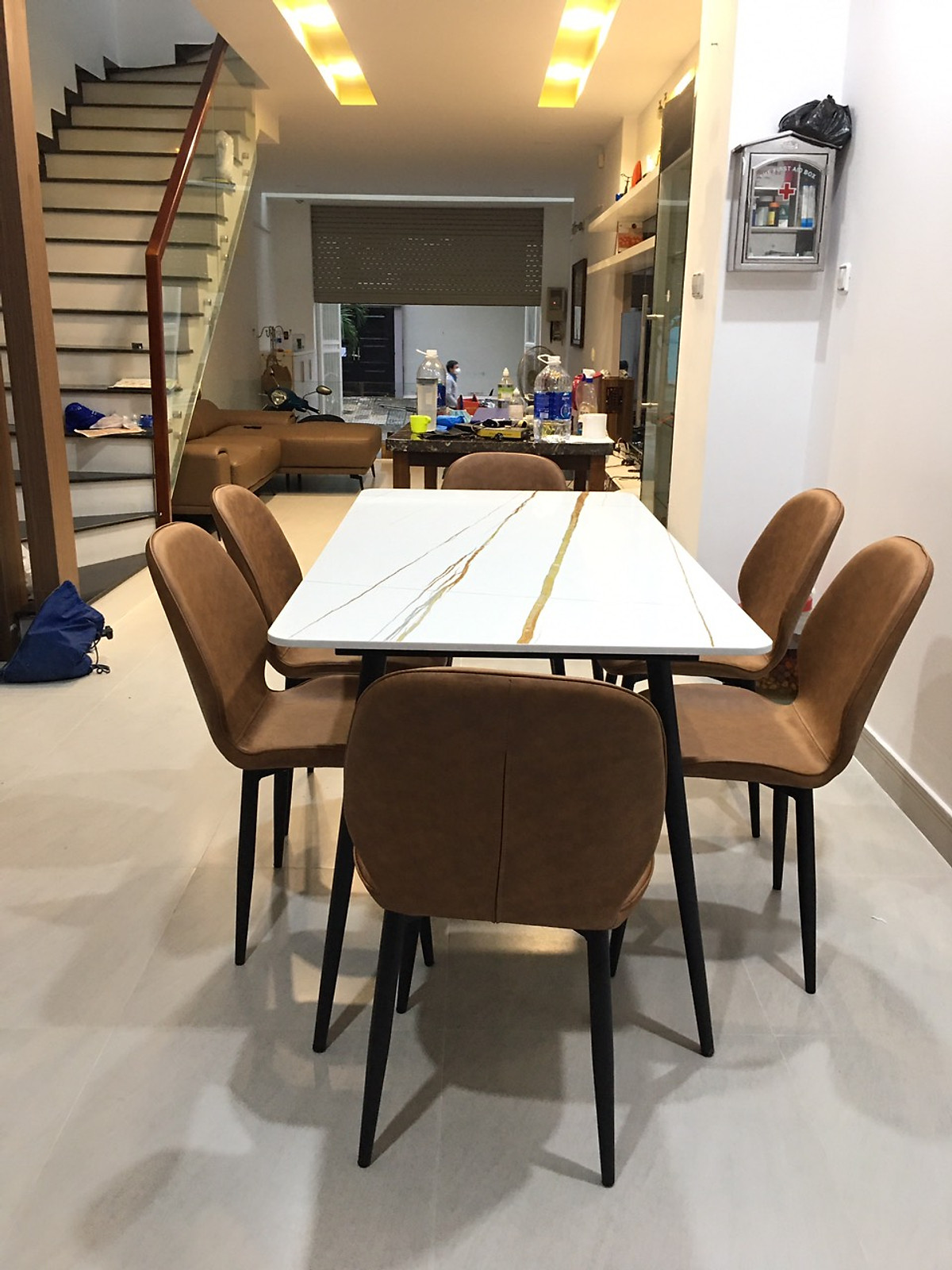Kích thước: 1m6x80cm Bàn ghế ăn mặt đá Stone 6 ghế da Chất liệu : Bàn mặt đá, chân gỗ cao su Số lượng : 1 bàn 1m6 , 6 ghế da Bàn ăn chất lượng