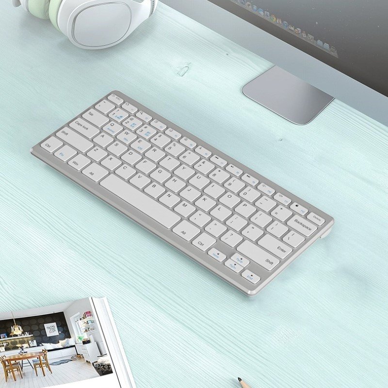 . Bộ Bàn phím không dây mini K19 - đa kết nối bluetooth 5.0 + 3.0 + Usb wireless 2.4G . Kết Nối : bluetooth 5.0 + bluetooth 3.0 + Usb wireless 2.4G . Khoảng cách kết nối 10m . Chuột có 3 nấc DPI : 800 / 1200 / 1600 Silent click , không phát ra tiếng click . Bàn Phím Sử dụng Lẫy bướm chống ồn , gõ nhẹ và êm   . Thiết bị hỗ trợ : PC , Laptop , điện thoại , máy tính bảng , Smart TV android . Hệ điều hành hỗ trợ : Window , Android , Ios , Macos . Nguồn : 4 Pin rời AAA ( Pin tiểu 3A ) , sản phẩm chưa kèm pin . Nhựa an toàn ABS . Trọng Lượng: 276g . Kích thước: 28.4 x 12.5 x 2 cm Bàn phím - 11.1 x 5.7 x 2.6 cm chuột   . Điểm Nổi Bật : . Bàn phím và chuột siêu mỏng , gọn nhẹ . Chống ồn cả phím và chuột . Thiết kế sang trọng tinh tế . Hỗ trợ nhiều nền tảng với mức giá hợp lý   . Tính Năng thông minh : . Chế độ tiết kiệm pin khi không sử dụng . Chuyển đổi nhanh giữa các chế độ không dây và các hệ điều hành bằng tổ hợp phím ( có bảng hướng dẫn )   . Hướng dẫn kết nối usb 2.4G . Phím : Bật công tắc on , nhấn tổ hợp Fn+3 . Chuột : Bật công tắc ON . Trên thiết bị máy tính , điện thoại cắm usb 2.4G vào là có thể kết nối   . Hướng dẫn kết nối Bluetooth . Không cắm usb2.4G . Phím : Bật công tắc on , nhấn giữ tổ hợp Fn+1 hoặc Fn+2 đến khi led chớp . Chuột bật công tắc on , led xanh dương chớp . Trên thiết bị máy tính , điện thoại mở bluetooth dò và kết nối