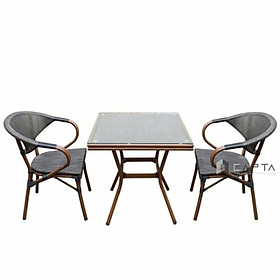 Bộ bàn ban công 2 ghế nhựa giả mây TE2044-60S / CC2031-T Nội thất Capta tại tp hcm - Chất liệu: Bàn: Mặt gỗ nhựa, chân sắt sơn tĩnh điện vân gỗ; Ghế: Nệm và