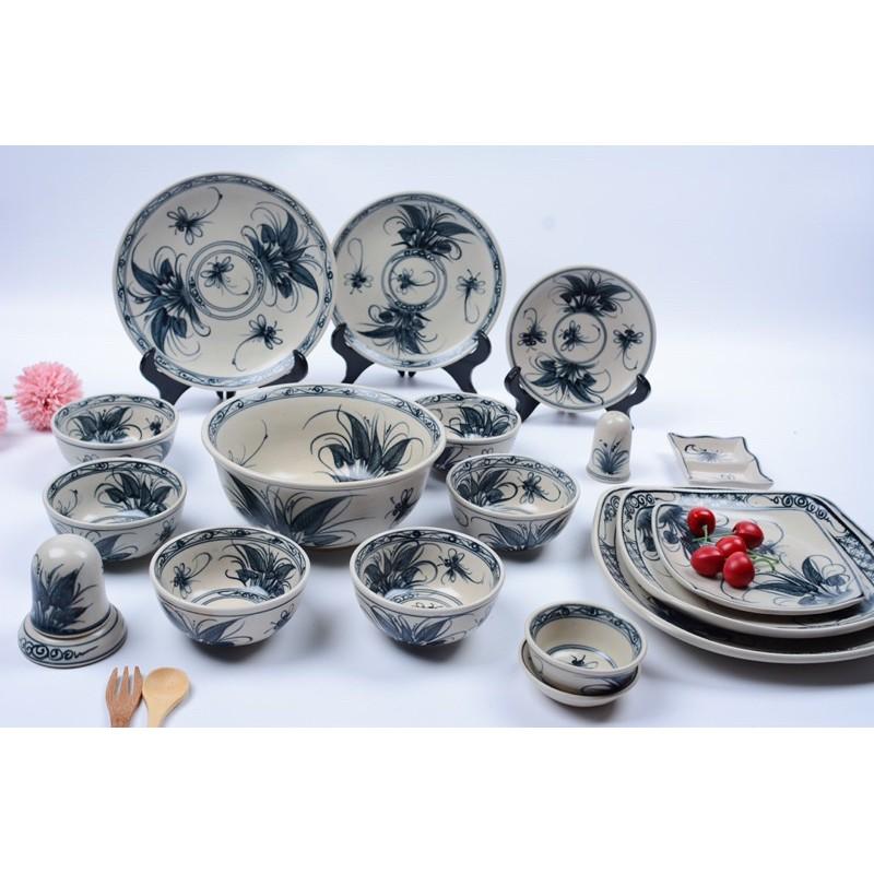Bộ đồ ăn Bát Tràng - Sản phẩm bao gồm: 6 bát cơm, 1 mắm, 1 muối, 1 tô 16, 1 tô 18, 1 đĩa tròn 14, 1 đĩa tròn 16, 1 đĩa tròn 18,