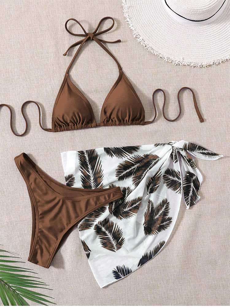 Bikini, đồ bơi nữ đi biển set 3 món hai mảnh họa tiết hoa kèm khăn quấn