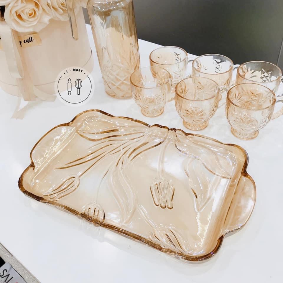 ✨BỘ BÌNH ĐỰNG NƯỚC UỐNG KÈM 6 CỐC VÀ KHAY THỦY TINH VÀNG CAO CẤP DLICSY
