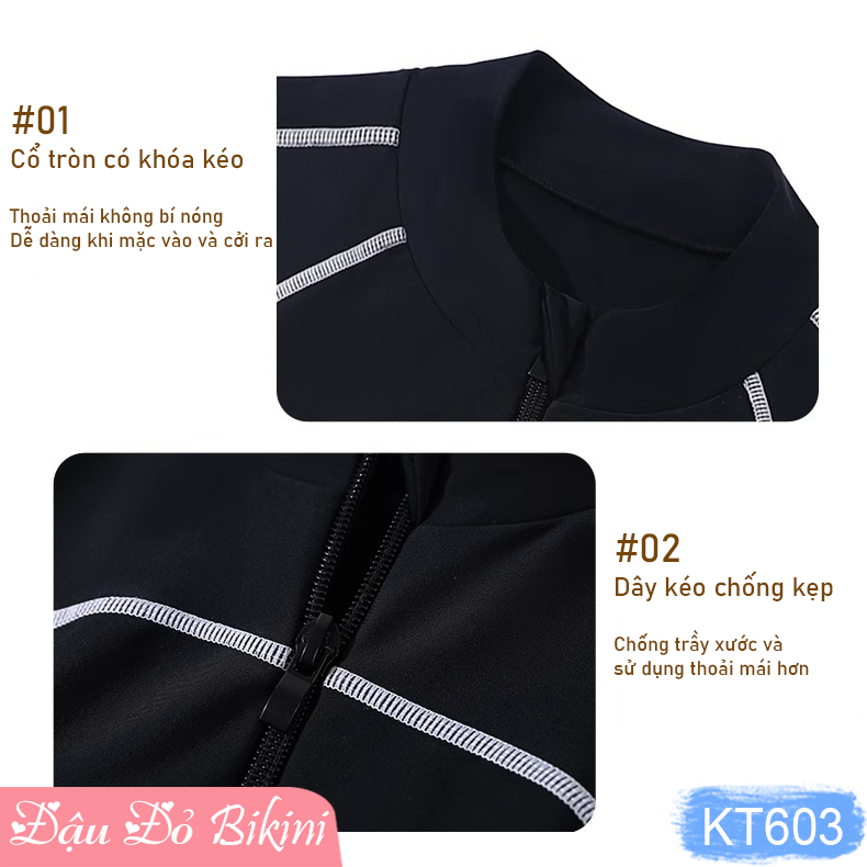 ✨Bộ bơi nữ trẻ trung cá tính, áo crop top dài tay kín đáo có khóa kéo trước, quần bơi 2 lớp thể thao hiện đại, thun bơi lạnh mịn đẹp | KT603